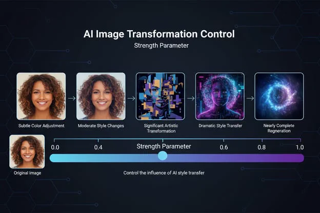 Stärkeparameter (Strength): Die meisten Plattformen bieten einen "Bildstärke"- oder "Denoising Strength"-Schieberegler (typischerweise im Bereich von 0,0 bis 1,0), der das Gleichgewicht zwischen Transformation und Erhaltung steuert. Werte um 0,4-0,7 liefern im Allgemeinen die besten Ergebnisse für die meisten Anwendungen.