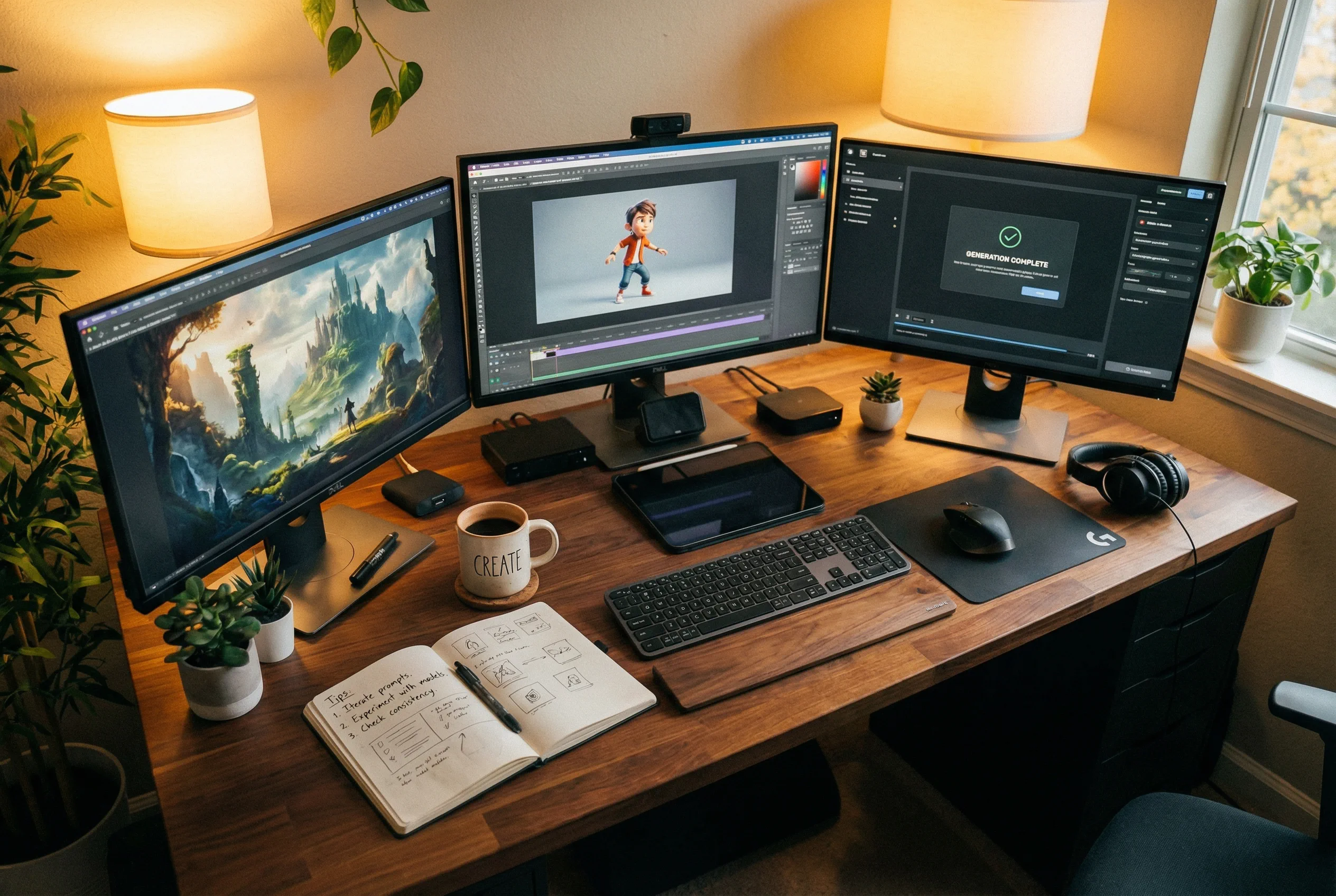 - 프롬프트 반복: 첫 번째 결과가 최선인 경우는 드뭅니다. 초안으로 간주하세요. 피사체, 스타일 또는 카메라 각도를 수정하고 다시 생성하세요.