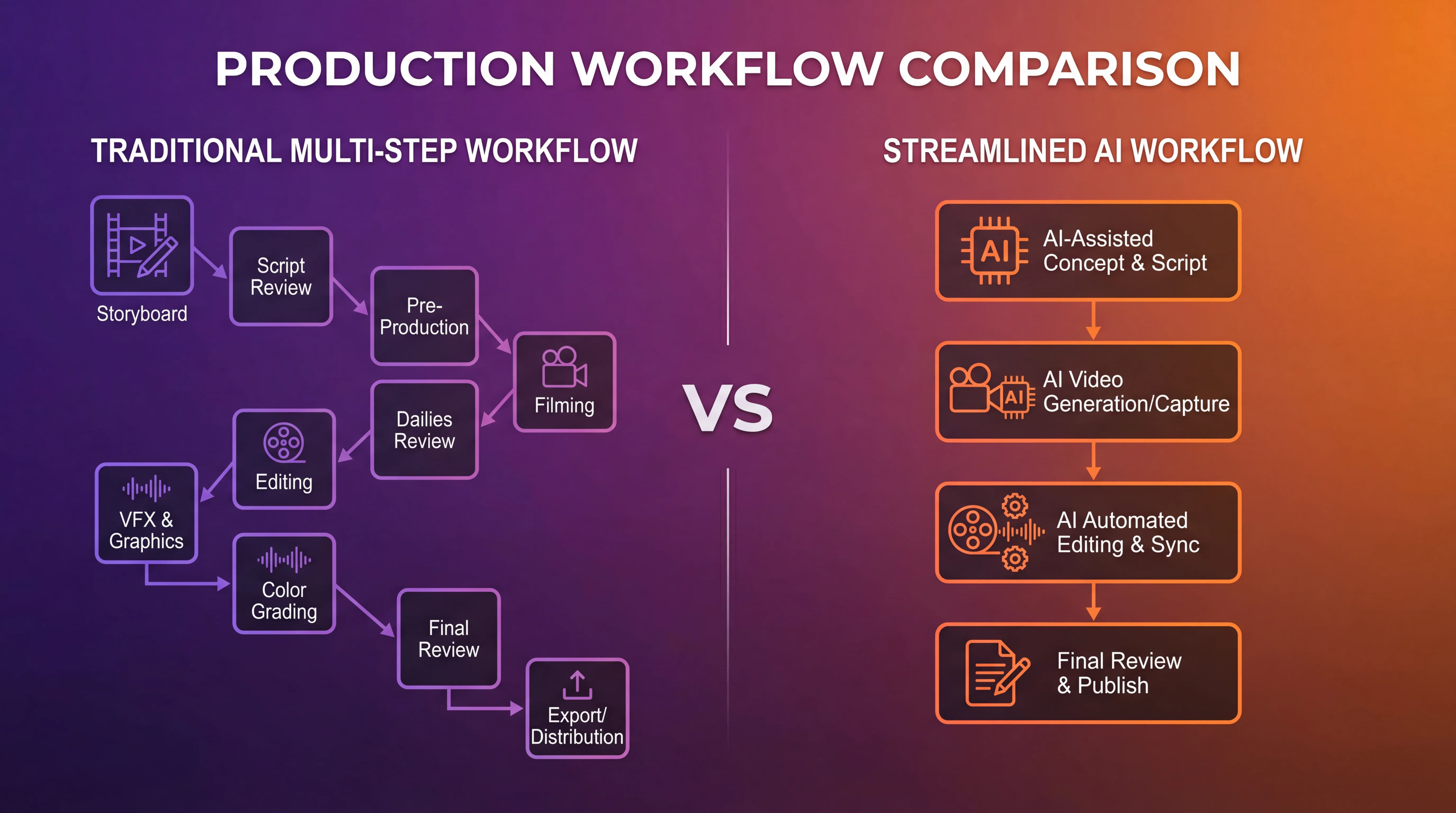 AI视频生成的成本和时间效率已经在扰乱传统制作经济学。传统上可能花费 $5,000-10,000 制作的短视频内容现在可以用不到 $100 的AI生成成本完成。一个需要大量特效的90分钟项目,AI生成成本可能为 $10,000-15,000,而传统VFX则需数十万美元。