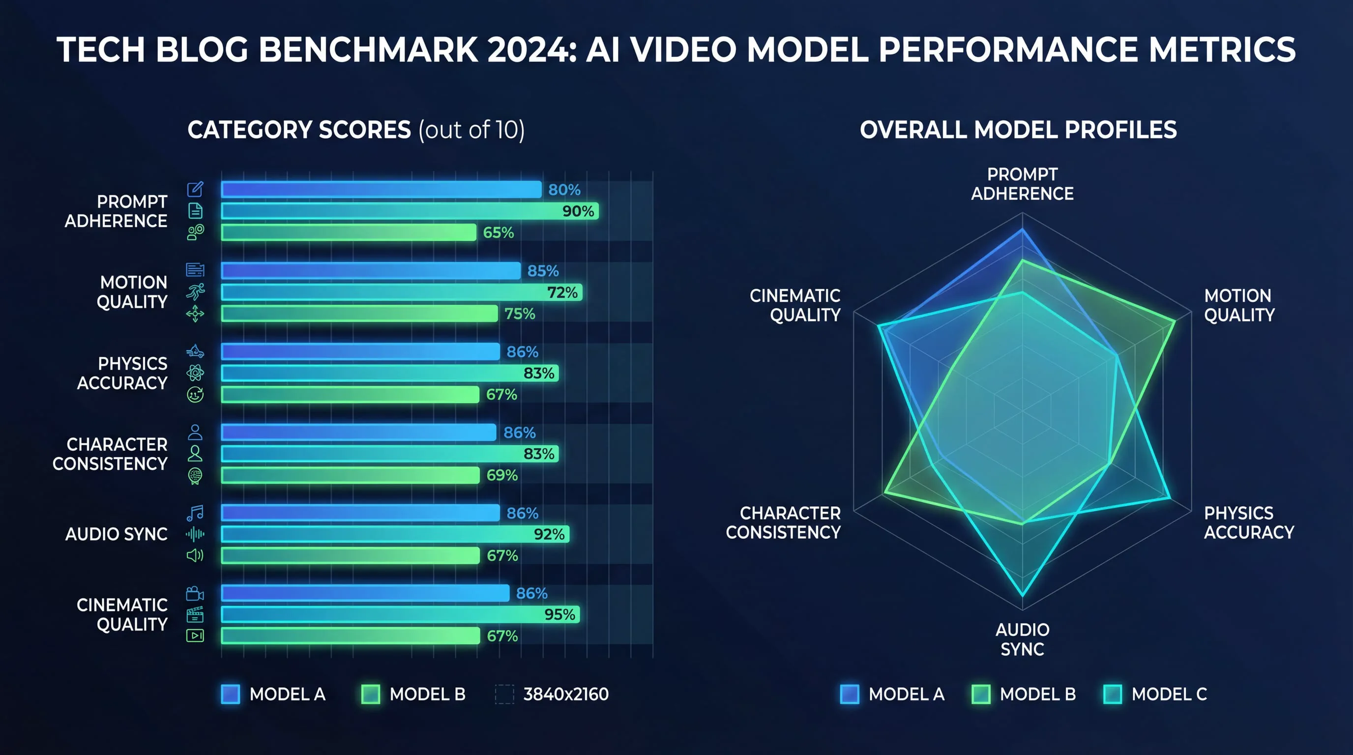 在基准对比中,Veo 3.1 在光照准确性、纹理细节和整体视觉打磨方面始终得分最高。独立测试显示,Veo 3(3.1的基础)在包括真实感、光照准确性和品牌细节保留在内的评估维度上均获得了最高分。